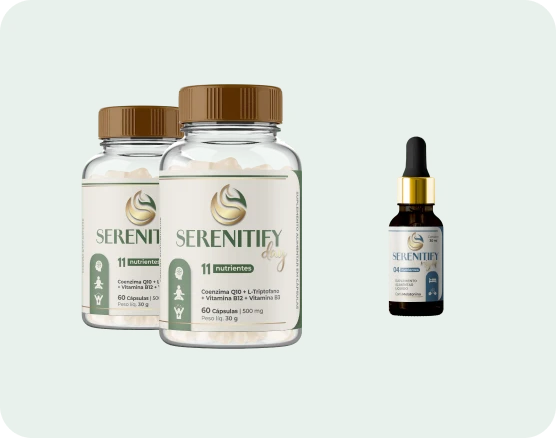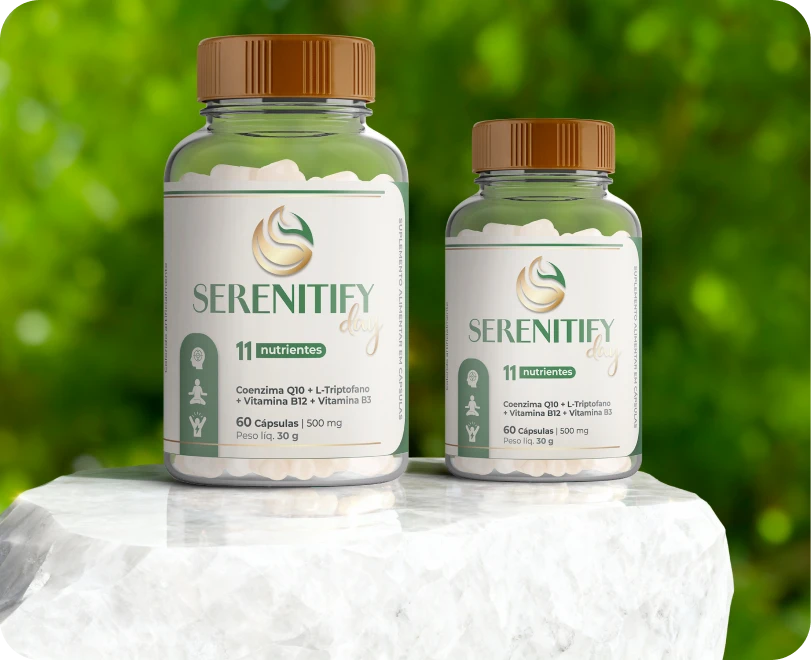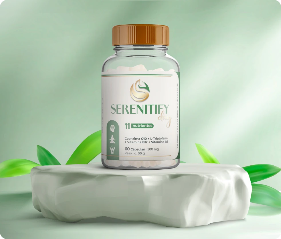 A fórmula de Serenitify Day atua diretamente nos níveis de estresse e ansiedade, ajudando a controlar as emoções e manter o equilíbrio mental, mesmo nos dias mais intensos.
